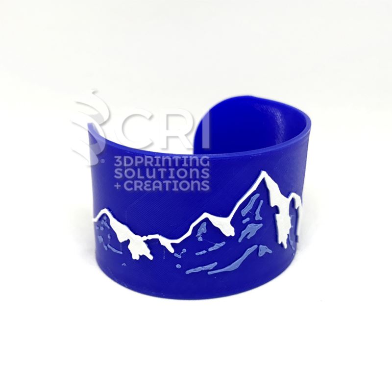 Il bracciale Everest ha un forte gioco di contrasti grazie ai colori della silhouette di una montagna, prevalentemente bianca, che si staglia sulla base in blu elettrico, entra a far parte della collezione di gioielli stampati in 3D firmati 3CRI.